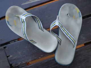 オレのビーチサンダルは相当使い古していて、汚れもとれず裏は磨り減り、はいている当人でさえ
