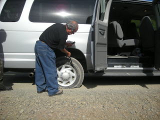 おっさん2人が作業を投げ出した。なんとスペアタイヤもパンクしていたのだ。