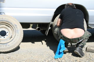 ドライバーとガイドのおっさん2人で手際よく作業を進める。大した時間のロスはなさそうだ。安心安心。