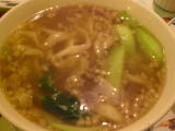 ミラノの中華街にて注文したラーメン。麺はうどんのように太い手打ち麺でした。 |