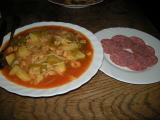 ひよこ豆や野菜、ソーセージやベーコン、牛などが煮込まれていて深い味でした。 |