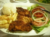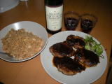 ハンバーグ。赤ワインでソースもばっちり。だんだん成長してきたか?!(右) |