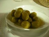 食事が出るまでのつなぎにオリーブがでてきました(左)しばらくはまりそうです。 |