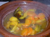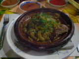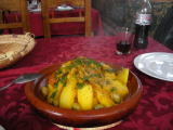 野菜のタジン。唯一屋台のタジンは味付けが足りず美味しくなかった・・。しかも大鍋で調理したものをタジンの器に盛っただけ。 |