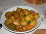 おつまみ用のオリーヴ。香辛料が効いていて美味。