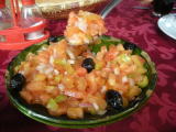 玉ねぎ、トマトの角切りにオリーヴ。味付けはライム、オイル、塩コショウとシンプルながら一皿ぺろりといける美味しさ。 |