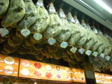 マドリッドのバールにて。大皿いっぱいに並べられた生ハムが一皿2,5ユーロくらいだったかな。日本で食べるのとは比べ物にならないほど厚切りでとろけます。