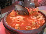 同じくサンチアゴ、中央市場にて。魚介のトマトスープ。具がごろごろ入っていて美味。 |