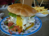 だんなが体調崩したメンドーサの街で一人食べたハンバーガー。ジューシーで美味しかったよ。。 |