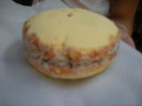 アーモンド粉を使った甘いお菓子。白あんみたいなのが入ってました。 |
