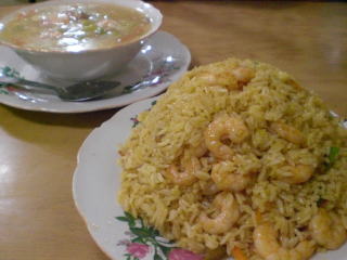 お勧めはエビ入りライスとミックススープ。チャーハンもありますが、エビ入りライスがうまい!スープもうますぎっ!2人でこの2つでおなかいっぱいです。 |