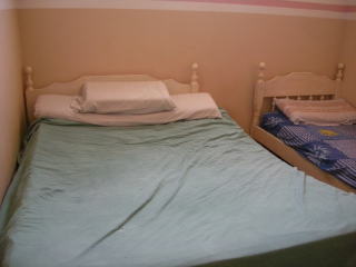 バスターミナルの側にあった宿。B・T共同(ですが小ゴキいっぱい・涙)ベッドのマットレスもこの通り真ん中窪んでてよく眠れなかった(だんなは・・)。