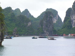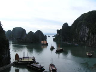ハロン湾へはハノイからツアーが出てて便利。船上泊のツアーなので海の上で
