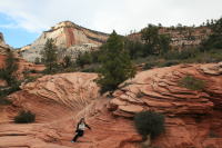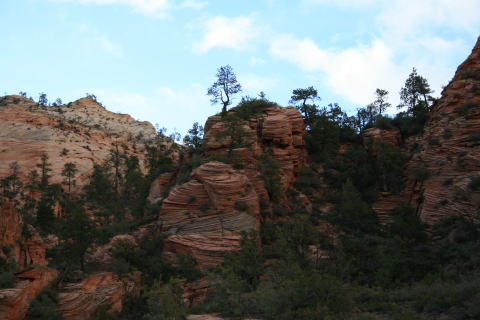 天気はあまり良くなかったですが、それでも奥へ奥へ。この岩と川って風景がザイオンって感じ。 |