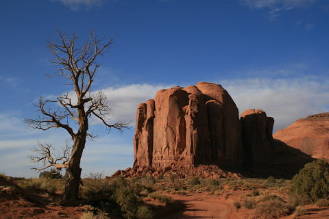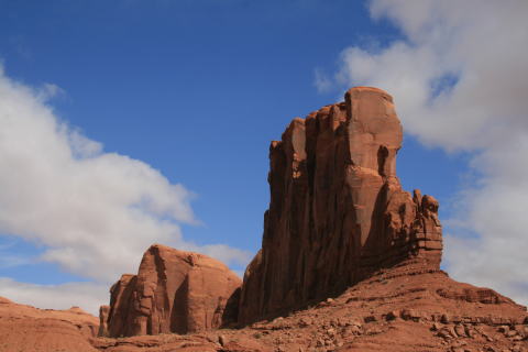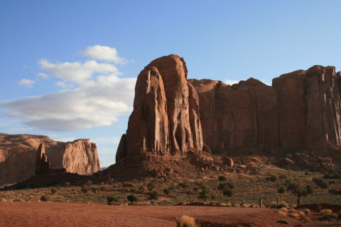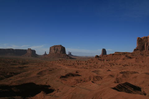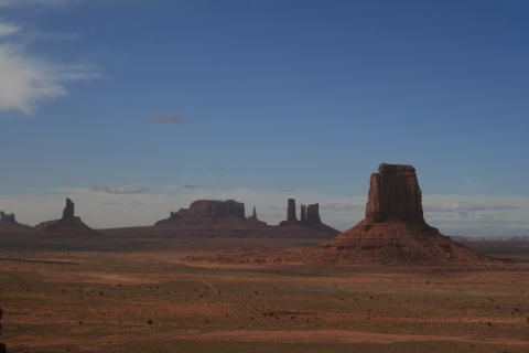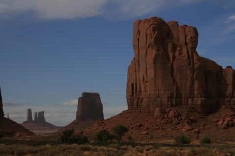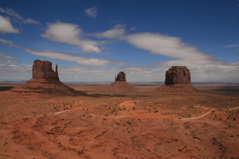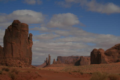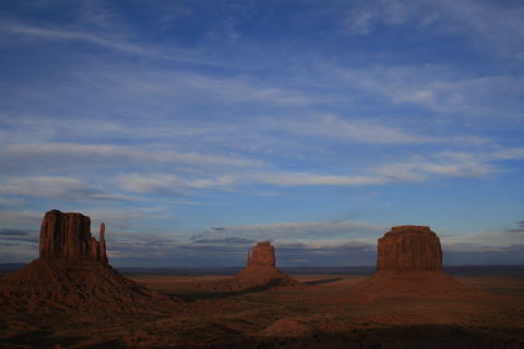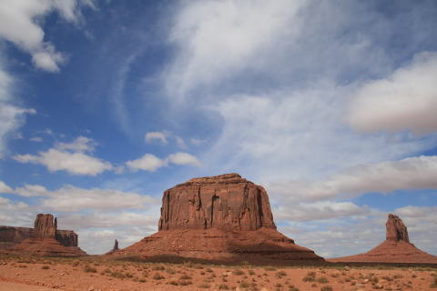 さすがはスーパー晴れ男。モニュメントバレー到着時にはかなり青空に。っというか、やっと天気予報が当たった。この3つのビュートがかっこよすぎる!!