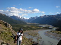 フィッツ・ロイ山を目指してトレッキング。天気もよく遠くの山まで見渡せ気持ちいいトレッキングでした。 |