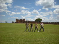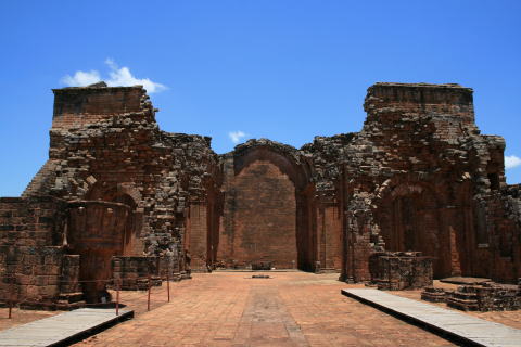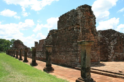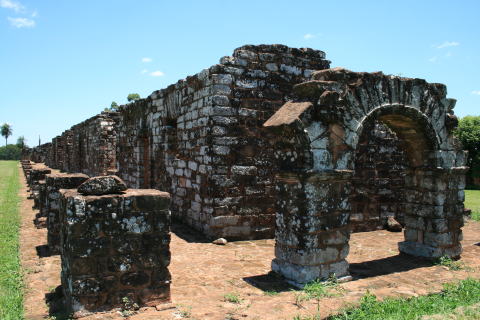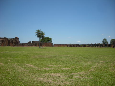 赤いレンガで造られ、広い広場を囲んで周囲にグアラニー族の住居が並ぶ。