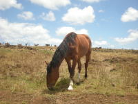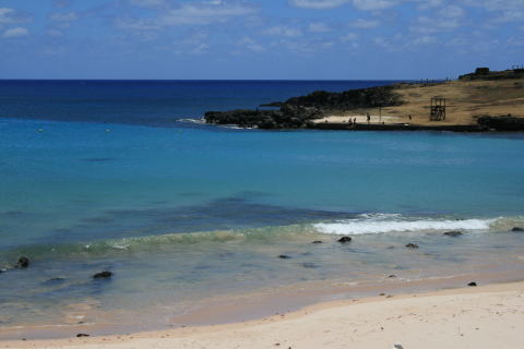 イースター島というとモアイばかりを想像してしまいますが、ビーチもきれい。村から車で40分程の、地元の人に人気のビーチです。 |