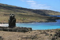 アナケナビーチの前に立つモアイ。島で最も早く1956年に立て直されたもの。ある程度風化が進んでいるものの威厳たっぷり。 |