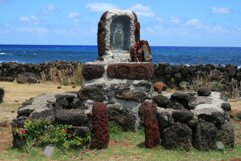 モアイをくりぬいて作られている(っぽい)石に、聖母マリア像が置かれていました。