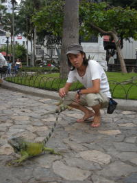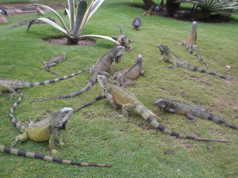 うじゃうじゃです。ハトが乗っても知らん顔。リスもいましたが、地元エクアドル人にはリスの方が大人気。 |