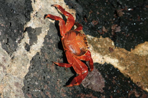 ガラパゴスの海岸の岩場にうじゃうじゃいるカニ。こんなにいるのに食用にされてません。