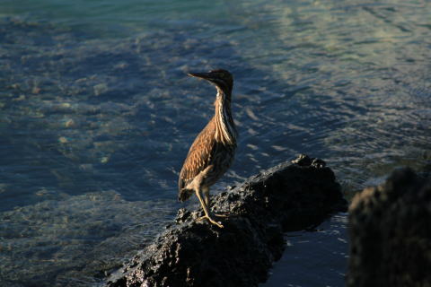 ガラパゴスの鳥の中で最も背が高い鳥。140cmにもなる。魚のほか、イグアナやウミガメなどの子供も食べるとのこと。
