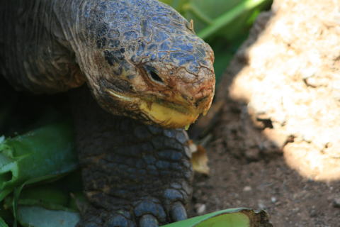 写真はピンタ島に生き残った最後の1頭、ロンサム・ジョージ(彼の名前)。ジョージが死ぬとまた1種絶滅に追いやられることになります。 |