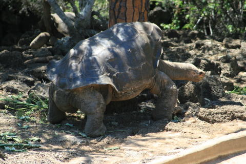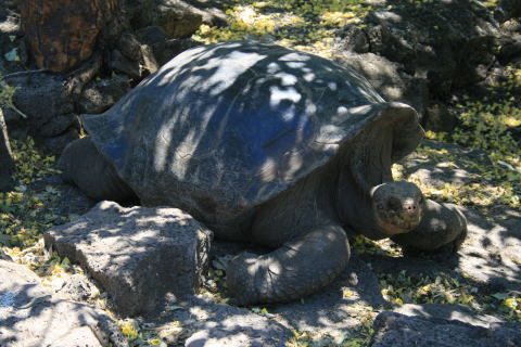 ゾウガメはガラパゴス諸島の島ごとに独自の進化をとげ、14種類いたが3種類は絶滅してしまったらしい。大きく分けると甲羅の型により、ドーム型と鞍型の2種。