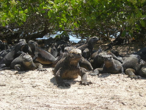 うじゃうじゃいるウミイグアナ。ボス?らしきヤツが立ちはだかりました。