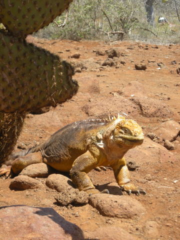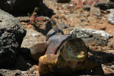 ウミイグアナに比べて肉や皮が重宝されたため生息数は少ない。体長1mの巨体だが、大好物はサボテンの花などかわいらしい一面も。
