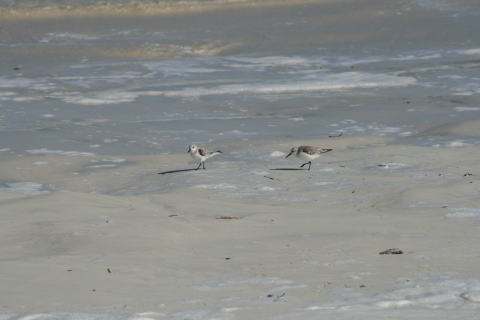 白い砂浜にいた白い鳥。早歩きで波と追いかけっこしているのがかわいかった。