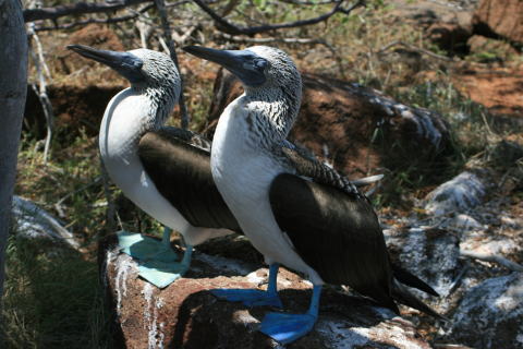 真っ青な足のアオアシカツオドリ。ひょこひょこ歩く姿がかわいい。ひょこひょこ歩くのは求愛ダンスという話も。人間を全く恐れない。