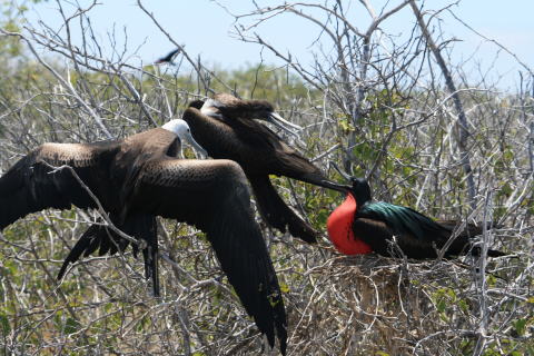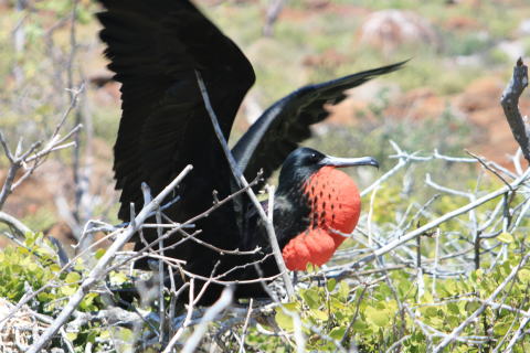 ガラパゴスアメリカグンカンドリ このグンカンドリをどうしても見たくて、一番多く生息するといわれるノース・セイモアに足を運びました。