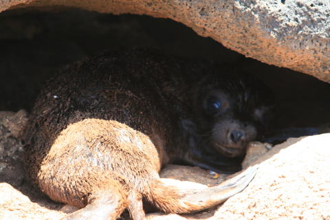岩陰で寝ていたアシカの赤ちゃん。おかあさんはどこいったんだい?