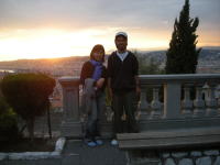 丘の上からみた夕日。街をきれいに赤く染めていました。