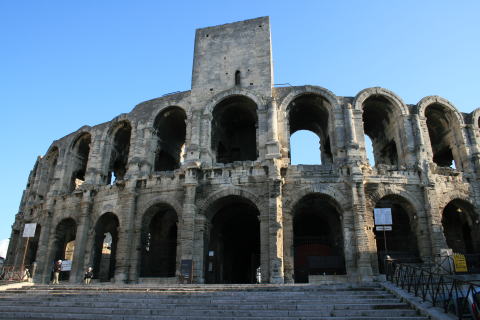 アルルの円形闘技場。フランスに残る最大の闘技場跡。昔は3層だったらしい。