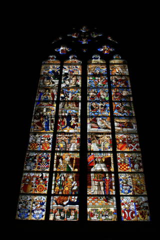 内部。ステンドグラスにもこだわりが。これはその1部で、まだまだたくさんあります。 |