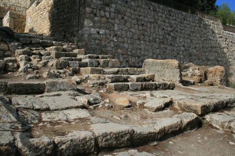 ゲッセ・マネで捕らえられたイエスは、この石段を通ってここに連行され、地下の牢獄に留置される。