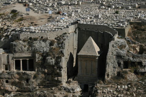ユダヤ人の墓の近くケデロンの谷にはアブサロムの墓、祭司ヘジルの墓、ゼカリアの墓(写真)があります。誰なのかは・・・わかりまへん。 |