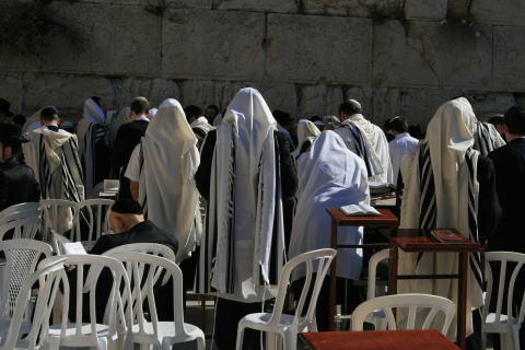 独特の服装で祈りを捧げるユダヤ人。
