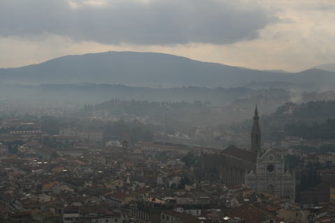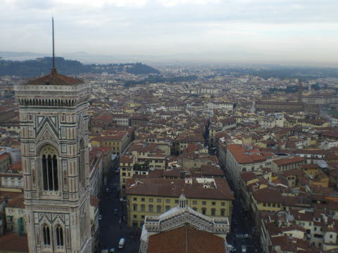 同じくドゥオモのてっぺんからの眺め。朝靄がかかって神秘的なフィレンツェの街。 |