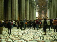 内部はミサの最中だったため、多くの人が祈りを捧げていました。 |