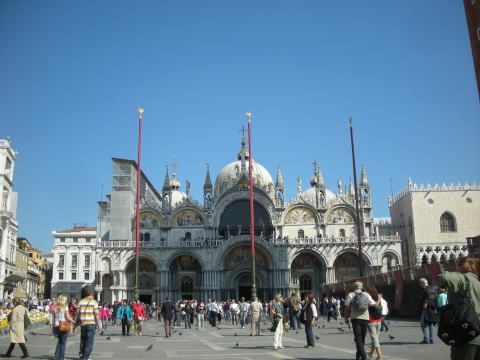 サン・マルコ寺院と広場。時期時間によっては、この広場は水没するようです。 |