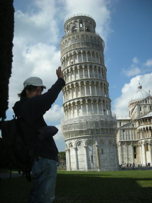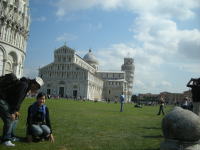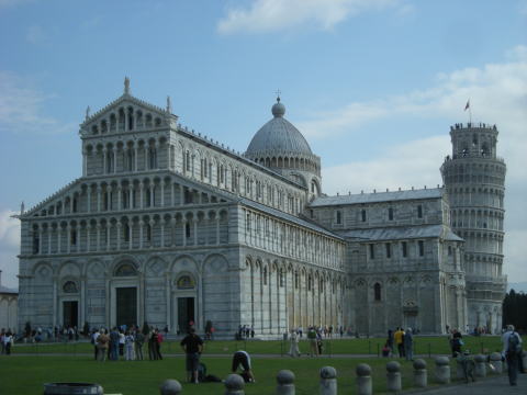 斜塔で有名なピサ。ドゥオーモと比べるとかなり傾いています。建設中から傾き始め、南に約5度傾いています。高さは約55m。