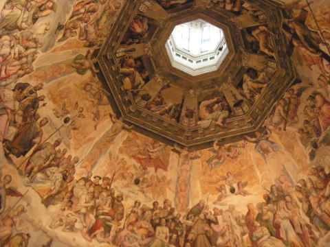 ドゥオモの天井は修道士によって描かれたフレスコ画。こんなてっぺんまで登って描いたこと自体すげぇ。