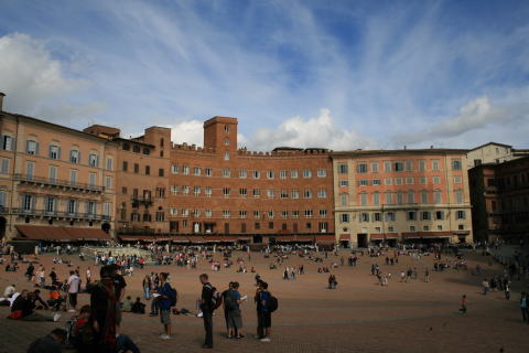 カンポ広場。世界で一番美しいといわれている広場です。中心に向かって微妙な傾斜になっています。 |