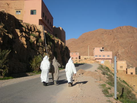 | ジュラバを着た現地人。ねずみ男のようです。 |