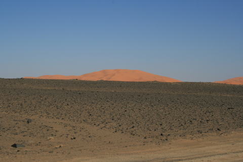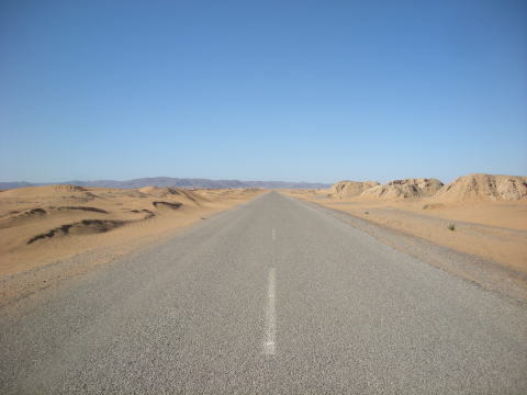 | 砂漠へ向かう道。この先にサハラ砂漠が広がっています。 |