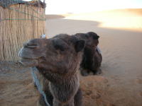 太陽が昇り空も青くなり、またラクダに乗って街に戻ります。2日間お世話になったラクダ。意外にかわいい顔してます。 |